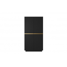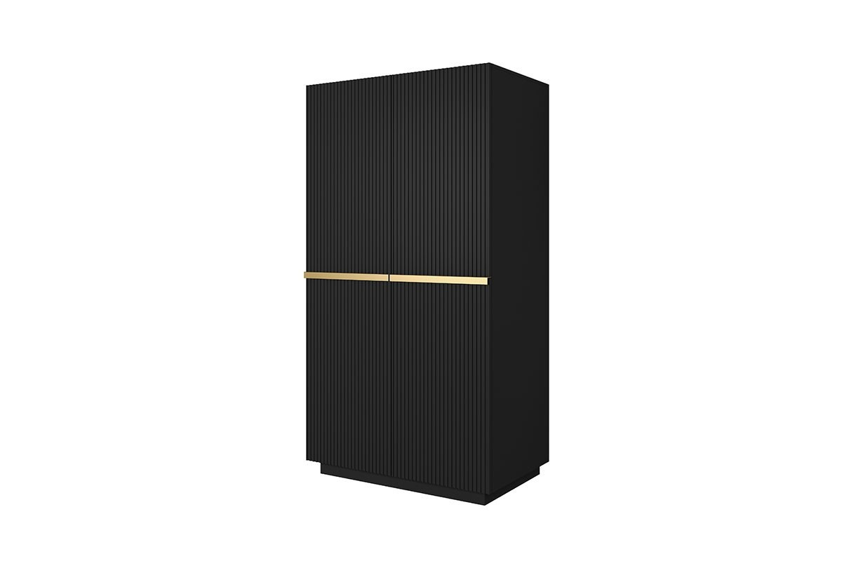 Dvoudveřová skříň Nicole s rýhovaným čelem a kovovými úchyty 100 cm - černý mat / zlaté úchyty, Šířka: 100, Výška: 207, Hloubka: 62, Výška nožek: , Hloubka desky: , Montáž: