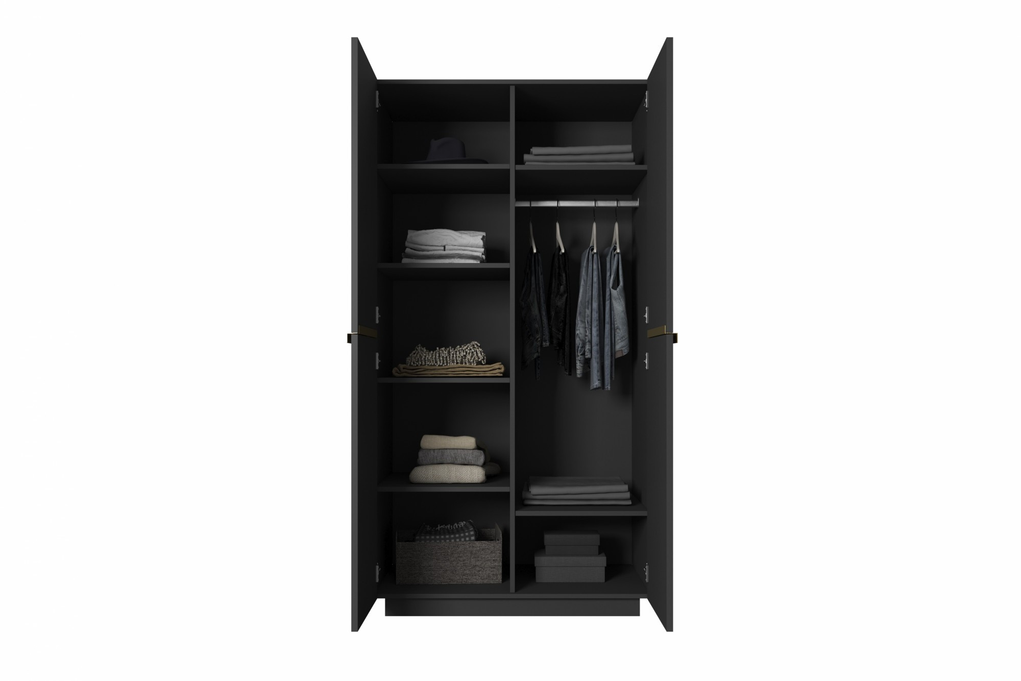 Šatní skříň Nicole, černý mat / zlaté úchyty