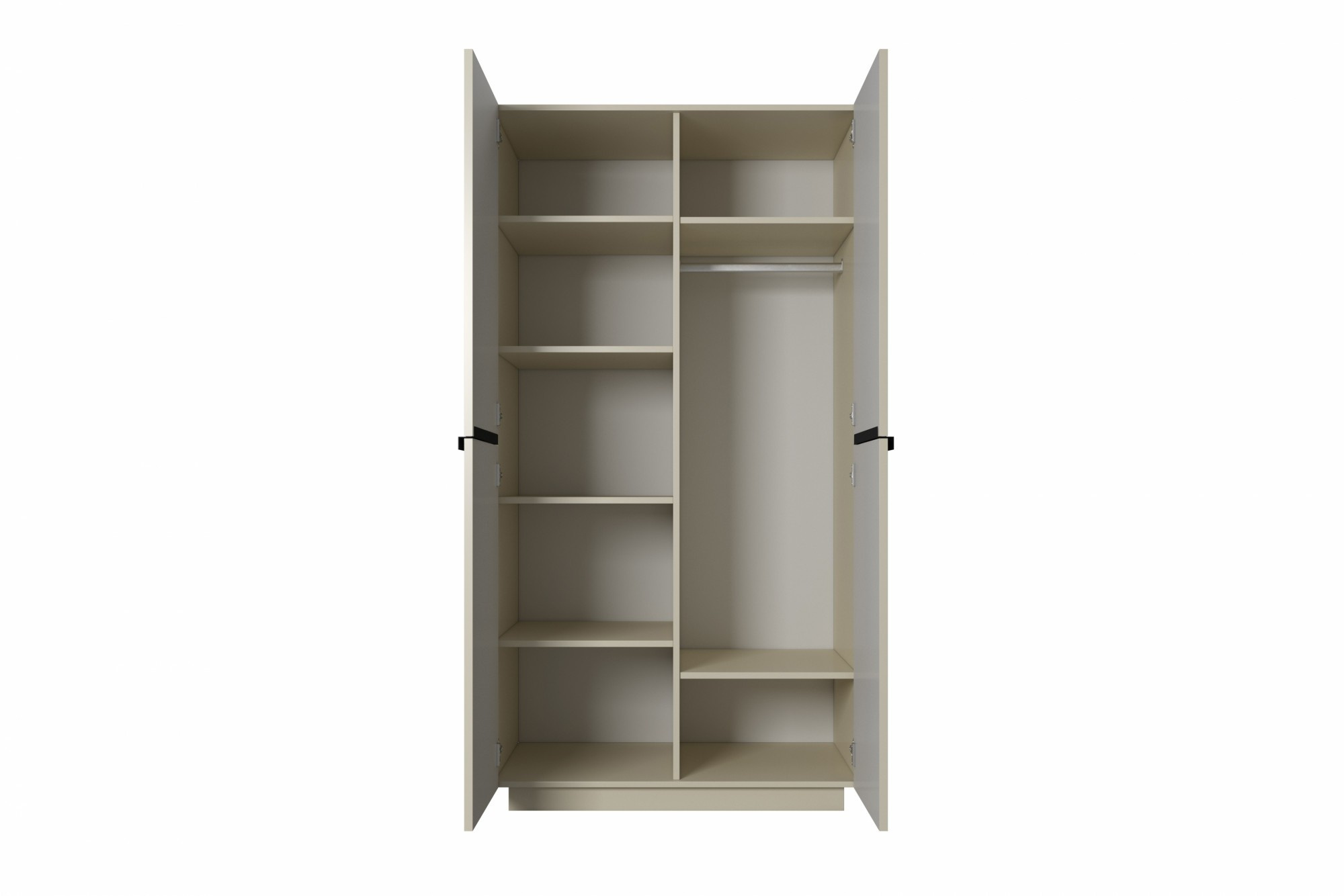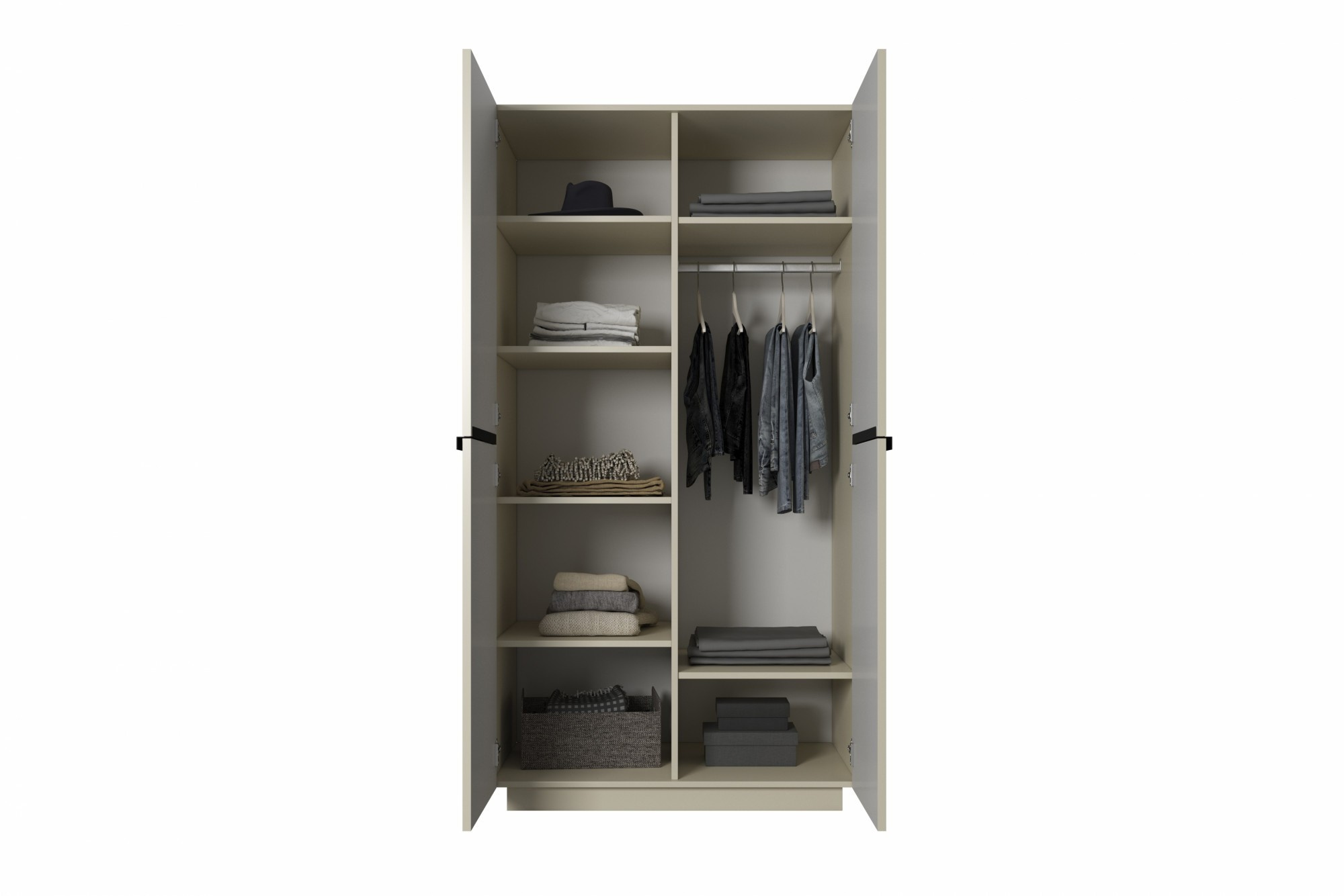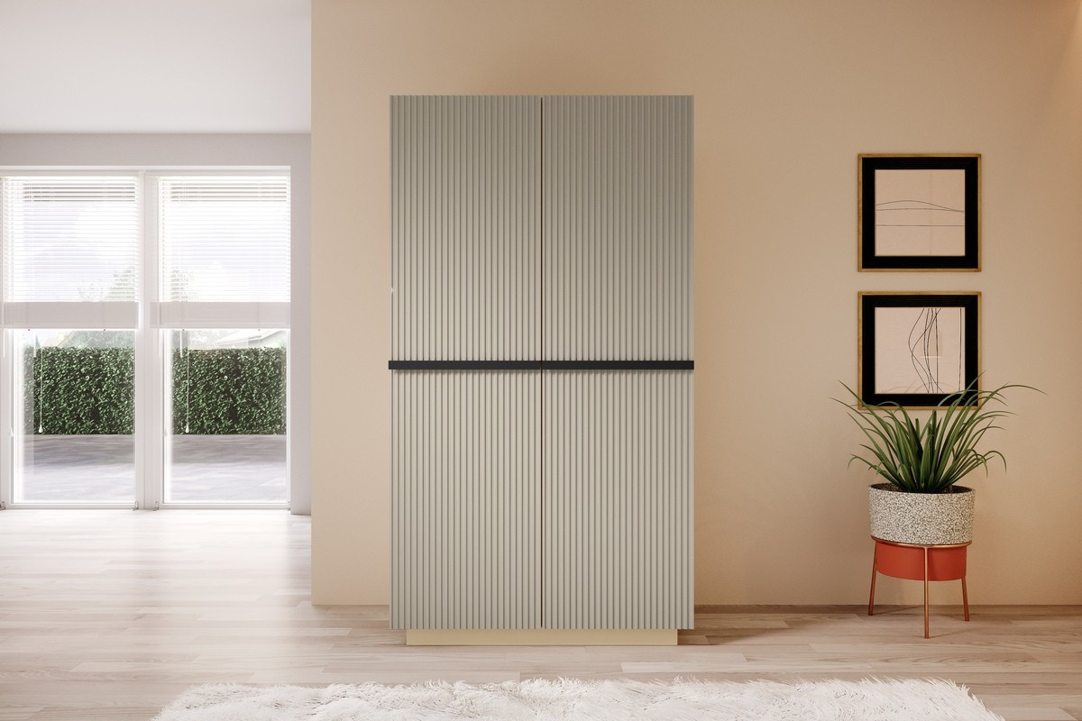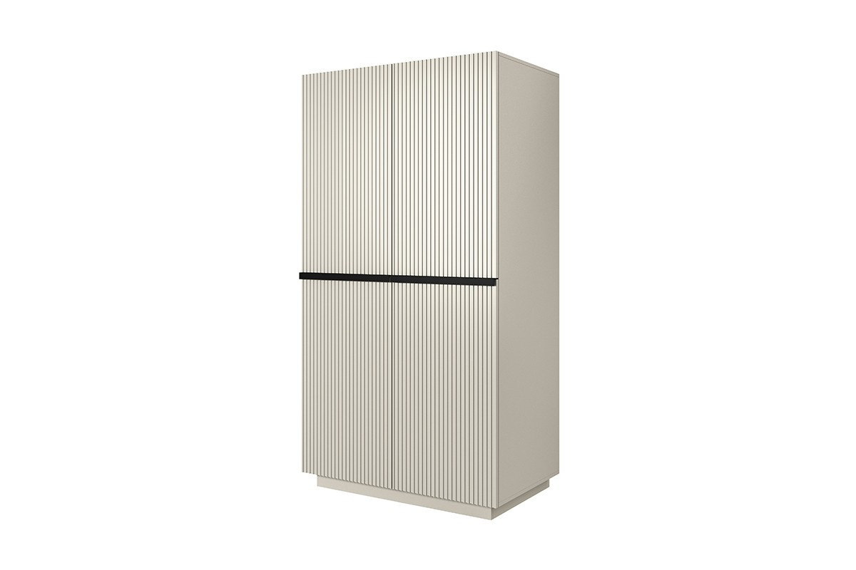 Dvoudveřová skříň Nicole s rýhovaným čelem a kovovými úchyty 100 cm - kašmír / černé úchyty, Šířka: 100, Výška: 207, Hloubka: 62, Výška nožek: , Hloubka desky: , Montáž: