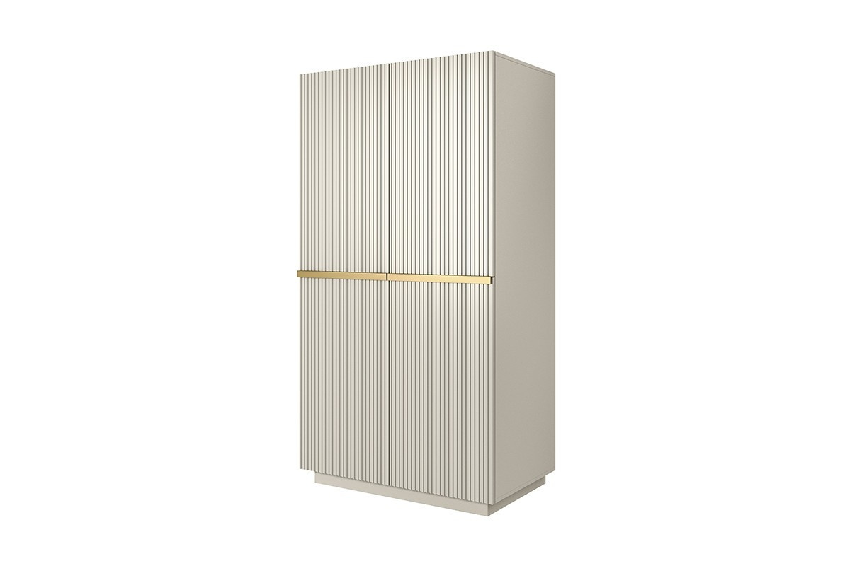 Dvoudveřová skříň Nicole s rýhovaným čelem a kovovými úchyty 100 cm - kašmír / zlaté úchyty, Šířka: 100, Výška: 207, Hloubka: 62, Výška nožek: , Hloubka desky: , Montáž: