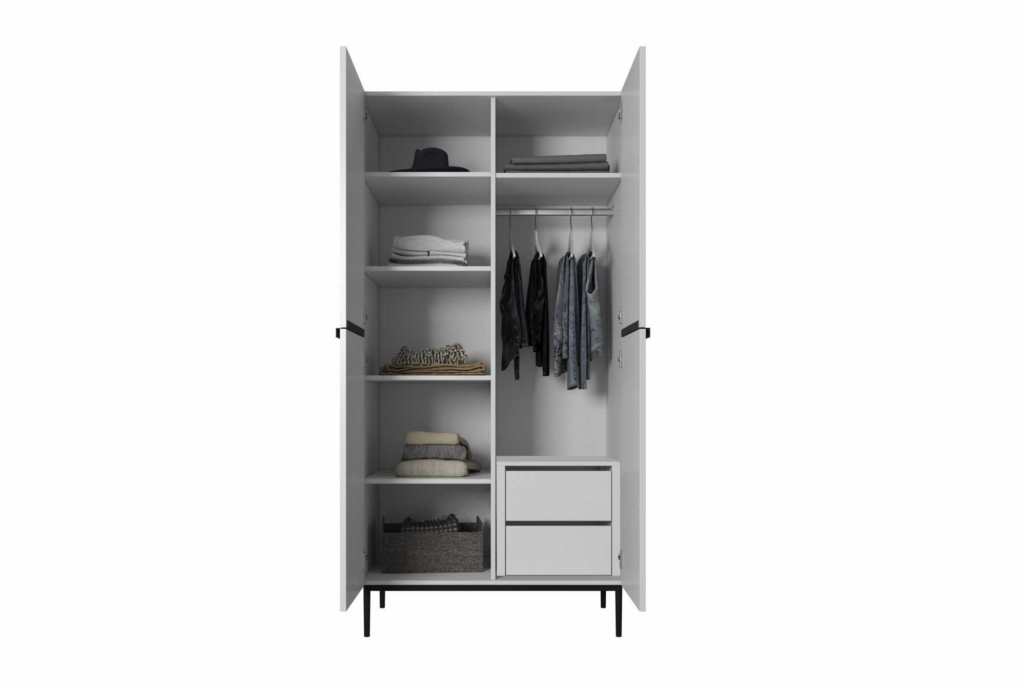 Dvoudveřová skříň Nicole se skrytými zásuvkami a kovovými nohami 100 cm - bílý mat / černé nožky, Šířka: 100, Výška: 220, Hloubka: 62, Výška nožek: 20, Hloubka desky: , Montáž: