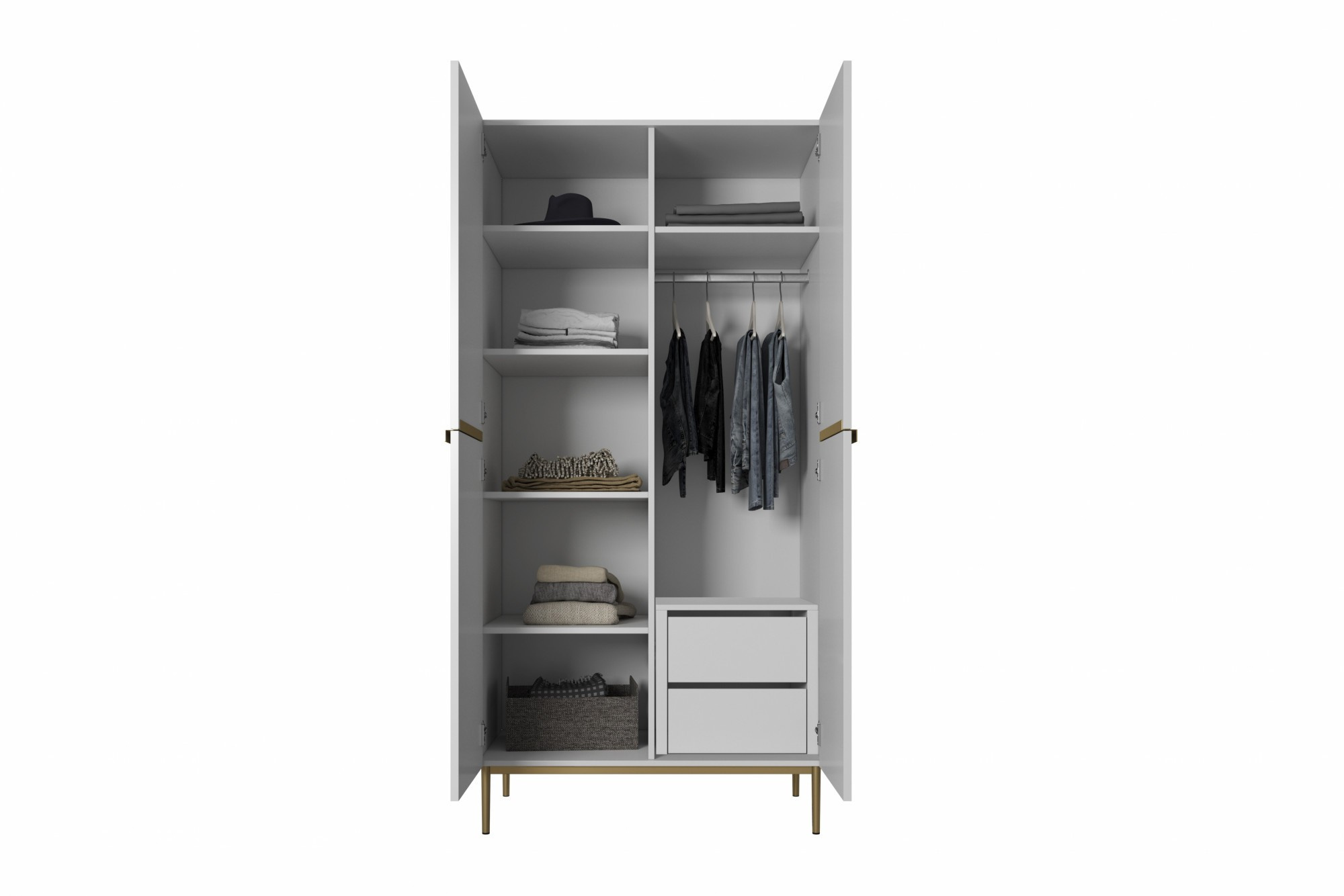 Dvoudveřová skříň Nicole se skrytými zásuvkami a kovovými nohami 100 cm - bílý mat / zlaté nožky, Šířka: 100, Výška: 220, Hloubka: 62, Výška nožek: 20, Hloubka desky: , Montáž: