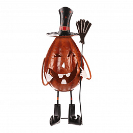 Dýně strašidelná na nohou - kovová dekorace, oranžová