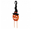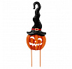 Dýně strašidelná s kloboukem - kovový zápich, oranžová