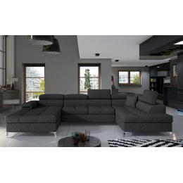 Eduardo je originální vkusná a mimořádně měkká rohová pohovka, která přináší do interiéru, ve kterém je umístěna, závan svěžesti a luxusu. Nábytek o rozměrech 345 x 202 x 90 cm zaručuje maximální pohodlí pro denní odpočinek i relaxaci v noci, protože je vybaven funkcí spaní s plochou určenou pro tento účel - 125 x 265 cm. Delfíní mechanismus se zde také dostává do popředí, který intuitivně a bez námahy rozkládá nábytek do požadované polohy. Mezi další výhody můžeme zahrnout prostorný úložný prostor na lůžkoviny umístěný v otomanu, stejně jako pohodlné sedadlo vyrobené z HR pěny, která se nejlépe přizpůsobí našemu tělu během spánku. Mezi další jedinečné vlastnosti rohové pohovky patří: nastavitelné opěrky hlavy, široké područky a vysoké kovové nohy. Rohová pohovka Eduardo je k dispozici v celé řadě látek z vzorníku Eltap, což vám umožňuje zařídit váš interiér velmi individuálním způsobem.