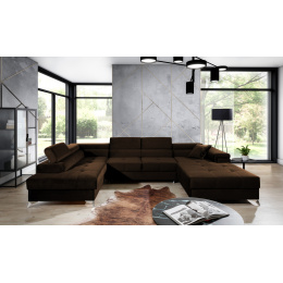Eduardo je originální vkusná a mimořádně měkká rohová pohovka, která přináší do interiéru, ve kterém je umístěna, závan svěžesti a luxusu. Nábytek o rozměrech 345 x 202 x 90 cm zaručuje maximální pohodlí pro denní odpočinek i relaxaci v noci, protože je vybaven funkcí spaní s plochou určenou pro tento účel - 125 x 265 cm. Delfíní mechanismus se zde také dostává do popředí, který intuitivně a bez námahy rozkládá nábytek do požadované polohy. Mezi další výhody můžeme zahrnout prostorný úložný prostor na lůžkoviny umístěný v otomanu, stejně jako pohodlné sedadlo vyrobené z HR pěny, která se nejlépe přizpůsobí našemu tělu během spánku. Mezi další jedinečné vlastnosti rohové pohovky patří: nastavitelné opěrky hlavy, široké područky a vysoké kovové nohy. Rohová pohovka Eduardo je k dispozici v celé řadě látek z vzorníku Eltap, což vám umožňuje zařídit váš interiér velmi individuálním způsobem.