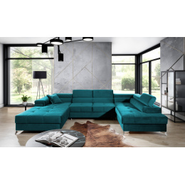 Eduardo je originální vkusná a mimořádně měkká rohová pohovka, která přináší do interiéru, ve kterém je umístěna, závan svěžesti a luxusu. Nábytek o rozměrech 345 x 202 x 90 cm zaručuje maximální pohodlí pro denní odpočinek i relaxaci v noci, protože je vybaven funkcí spaní s plochou určenou pro tento účel - 125 x 265 cm. Delfíní mechanismus se zde také dostává do popředí, který intuitivně a bez námahy rozkládá nábytek do požadované polohy. Mezi další výhody můžeme zahrnout prostorný úložný prostor na lůžkoviny umístěný v otomanu, stejně jako pohodlné sedadlo vyrobené z HR pěny, která se nejlépe přizpůsobí našemu tělu během spánku. Mezi další jedinečné vlastnosti rohové pohovky patří: nastavitelné opěrky hlavy, široké područky a vysoké kovové nohy. Rohová pohovka Eduardo je k dispozici v celé řadě látek z vzorníku Eltap, což vám umožňuje zařídit váš interiér velmi individuálním způsobem.