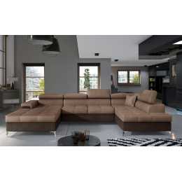 Eduardo je originální vkusná a mimořádně měkká rohová pohovka, která přináší do interiéru, ve kterém je umístěna, závan svěžesti a luxusu. Nábytek o rozměrech 345 x 202 x 90 cm zaručuje maximální pohodlí pro denní odpočinek i relaxaci v noci, protože je vybaven funkcí spaní s plochou určenou pro tento účel - 125 x 265 cm. Delfíní mechanismus se zde také dostává do popředí, který intuitivně a bez námahy rozkládá nábytek do požadované polohy. Mezi další výhody můžeme zahrnout prostorný úložný prostor na lůžkoviny umístěný v otomanu, stejně jako pohodlné sedadlo vyrobené z HR pěny, která se nejlépe přizpůsobí našemu tělu během spánku. Mezi další jedinečné vlastnosti rohové pohovky patří: nastavitelné opěrky hlavy, široké područky a vysoké kovové nohy. Rohová pohovka Eduardo je k dispozici v celé řadě látek z vzorníku Eltap, což vám umožňuje zařídit váš interiér velmi individuálním způsobem.