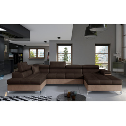 Eduardo je originální vkusná a mimořádně měkká rohová pohovka, která přináší do interiéru, ve kterém je umístěna, závan svěžesti a luxusu. Nábytek o rozměrech 345 x 202 x 90 cm zaručuje maximální pohodlí pro denní odpočinek i relaxaci v noci, protože je vybaven funkcí spaní s plochou určenou pro tento účel - 125 x 265 cm. Delfíní mechanismus se zde také dostává do popředí, který intuitivně a bez námahy rozkládá nábytek do požadované polohy. Mezi další výhody můžeme zahrnout prostorný úložný prostor na lůžkoviny umístěný v otomanu, stejně jako pohodlné sedadlo vyrobené z HR pěny, která se nejlépe přizpůsobí našemu tělu během spánku. Mezi další jedinečné vlastnosti rohové pohovky patří: nastavitelné opěrky hlavy, široké područky a vysoké kovové nohy. Rohová pohovka Eduardo je k dispozici v celé řadě látek z vzorníku Eltap, což vám umožňuje zařídit váš interiér velmi individuálním způsobem.