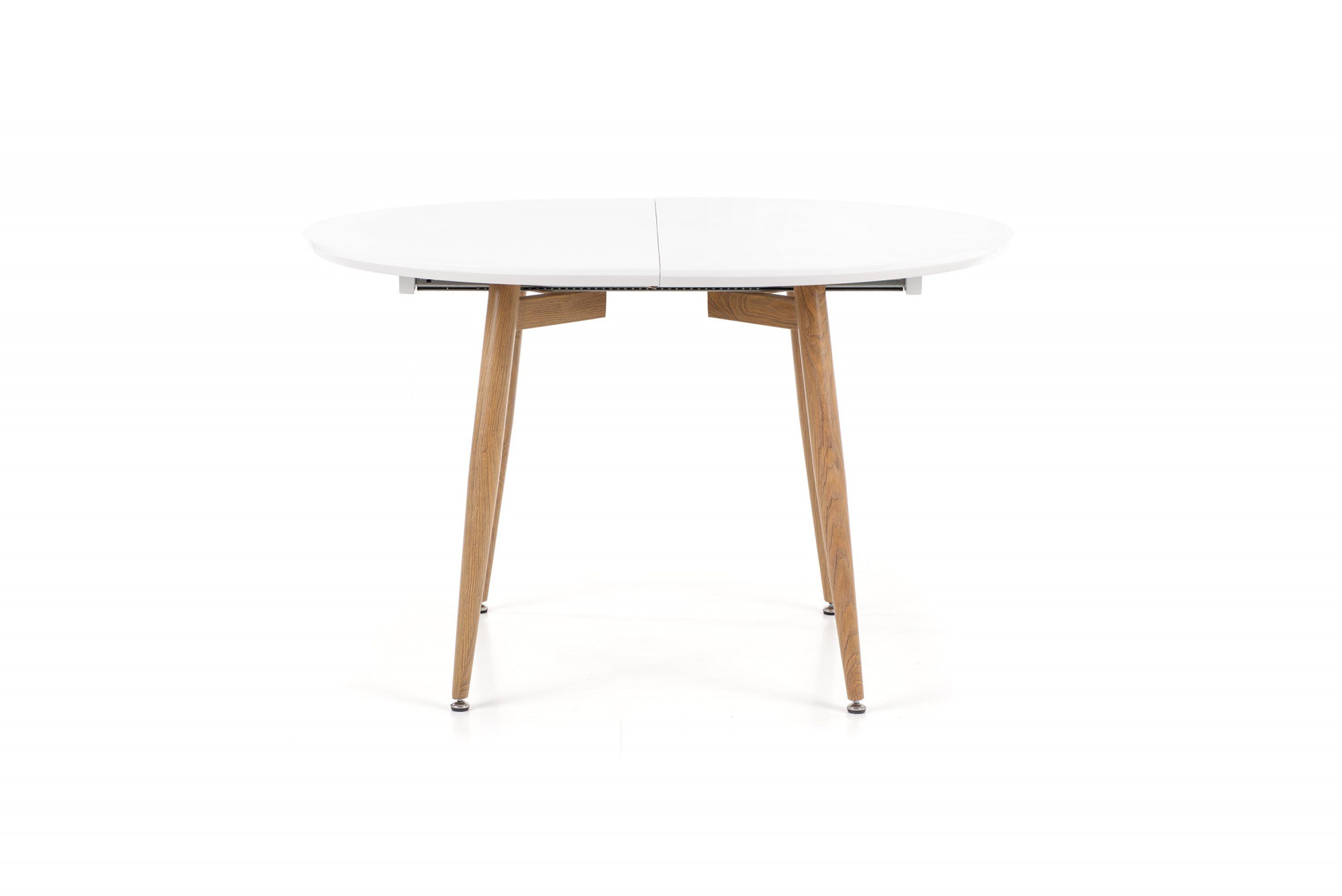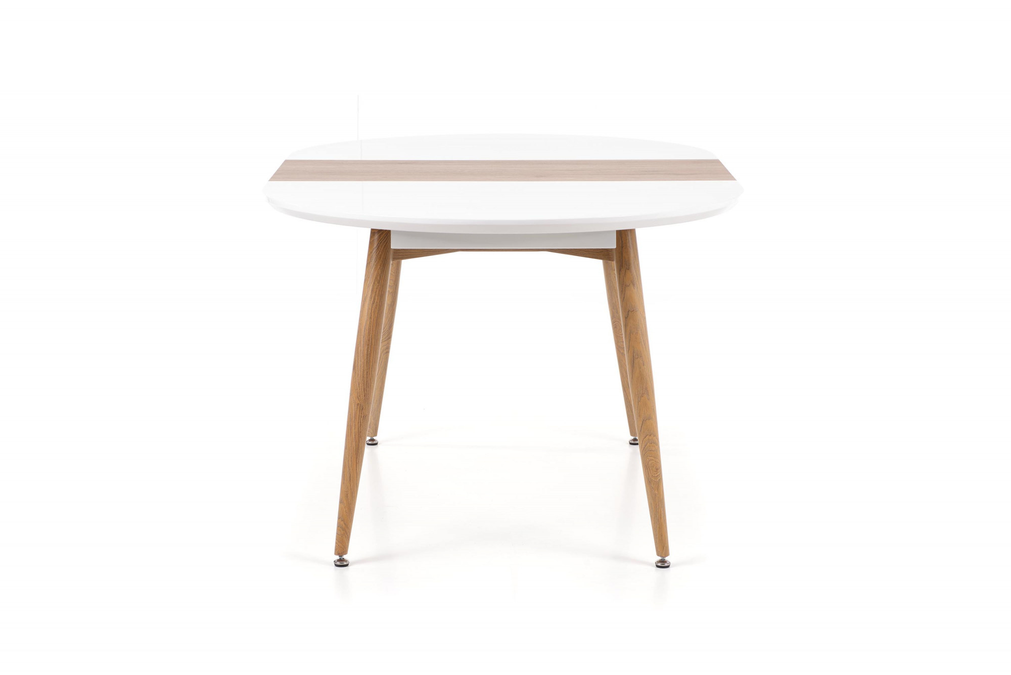rozkládací stůl, rozměry: 120-200/100/75 cm, materiál: MDF lakovaná / MDF laminovaná / ocel lakovaná, barva: bílá / dub san remo, nohy - dub san remo