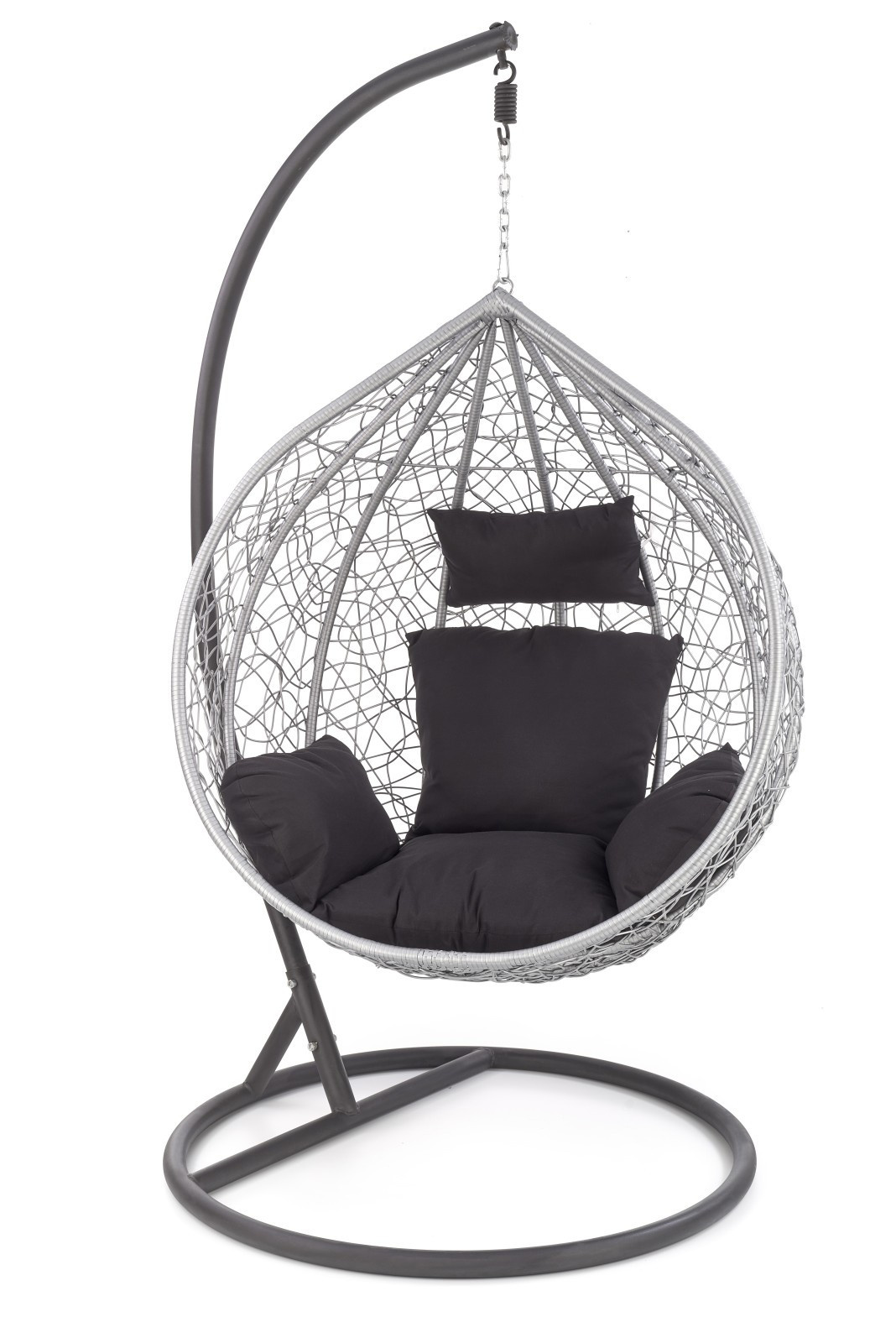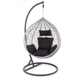 Rozměry: 195/106/112/58 cm, Materiál: umělý ratan / tkanina / práškově lakovaná ocel, Barva: černá - šedá