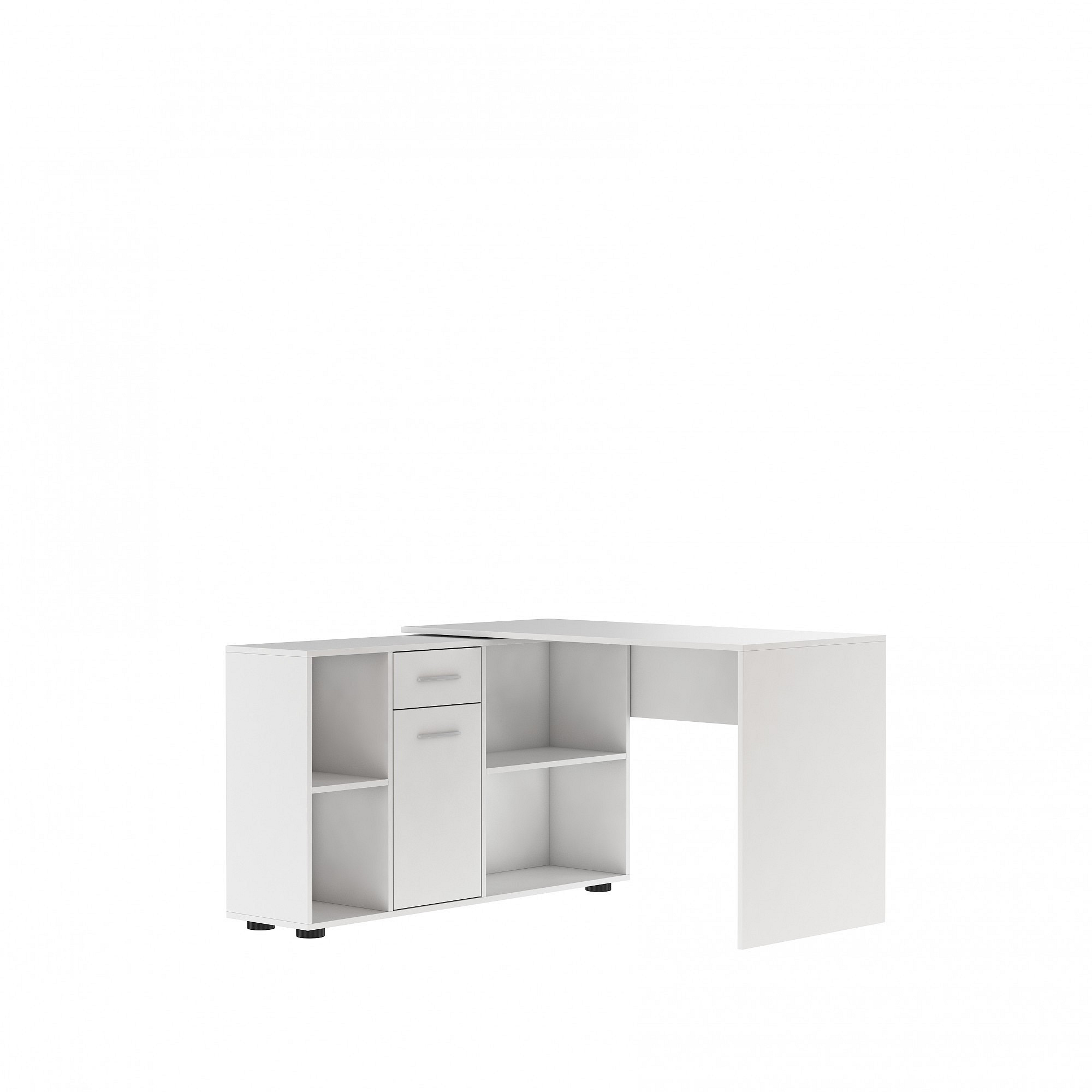 Rohový stůl ELISEO se ideálně hodí do studentského pokoje, kanceláře nebo pracovny. Díky své rohové konstrukci se vejde i do malých místností. Nábytek je vybaven zásuvkou, skříňkou a prostornými policemi, což zajišťuje dostatek místa pro uložení kancelářských potřeb. Psací stůl ELISEO je praktický a univerzální nábytek, který se jistě hodí do většiny interiérů.