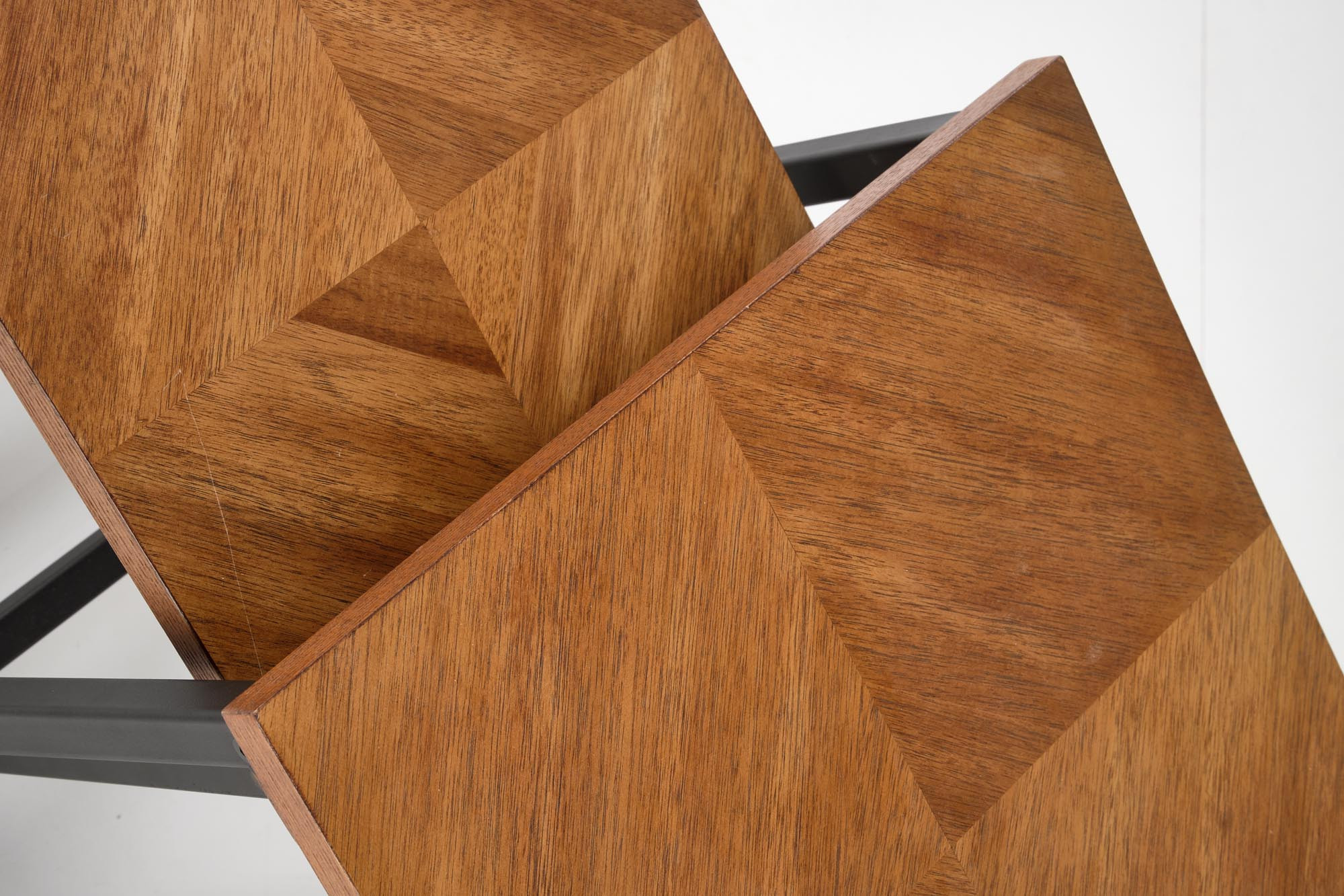 sada 2 lavic, rozměry: 40/40/49 a 30/30/39 cm, materiál: MDF + přírodní dýha / práškově lakovaná ocel, barva: horní deska - ořech, nohy - černá