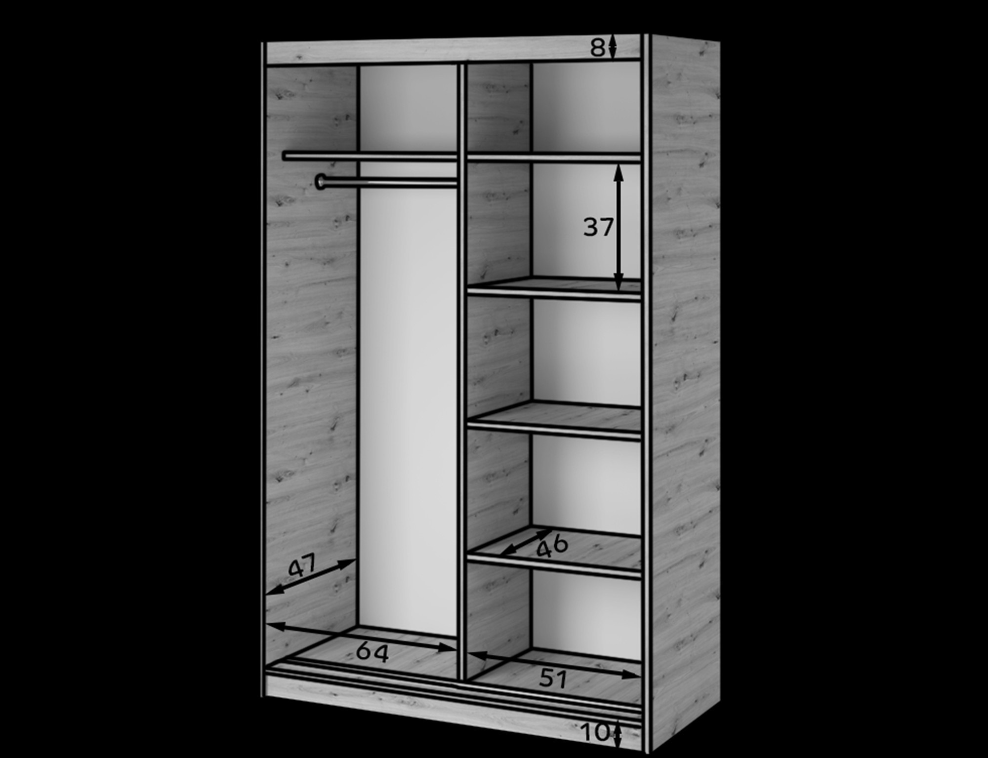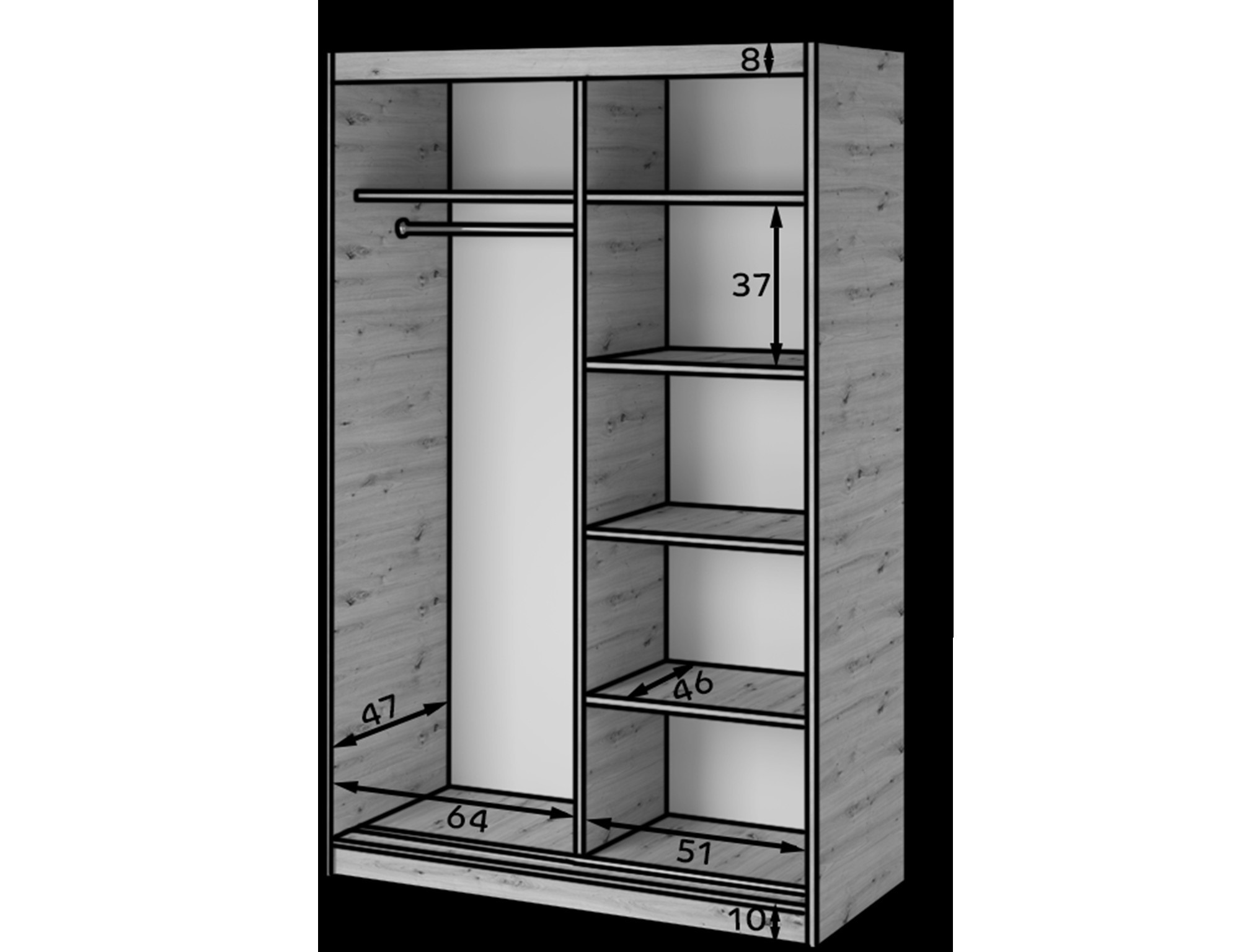 Posuvná skříň s zrcadlem Emerio II, o rozměrech 120x204x60 cm, je funkční a moderní kus nábytku ideální pro ložnice, chodby nebo šatny. Je vyroben z odolné laminované dřevotřísky v provedení dub artisan, s čelní stranou esteticky dokončenou poškození odolnou ABS hranou. Šatní skříň má dvě posuvné dveře se zrcadlem a je vybavena moderním mechanismem Laguna Fast, který zajišťuje plynulý a tichý provoz. Uvnitř je praktická závěsná tyč na oblečení a design je doplněn černým plastovým kluzákem. To dělá z šatní skříně Emerio II kombinaci stylu, odolnosti a každodenního pohodlí.