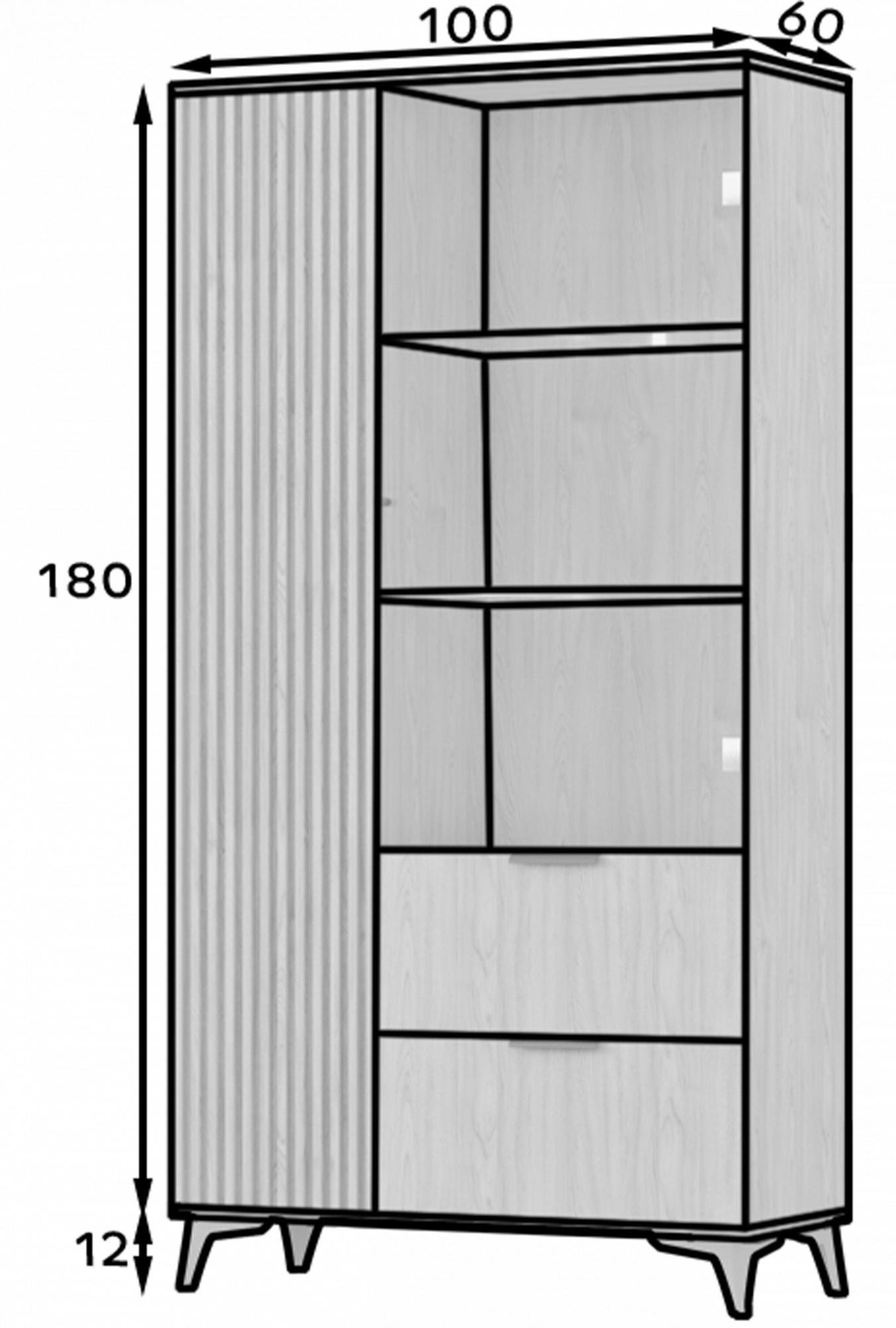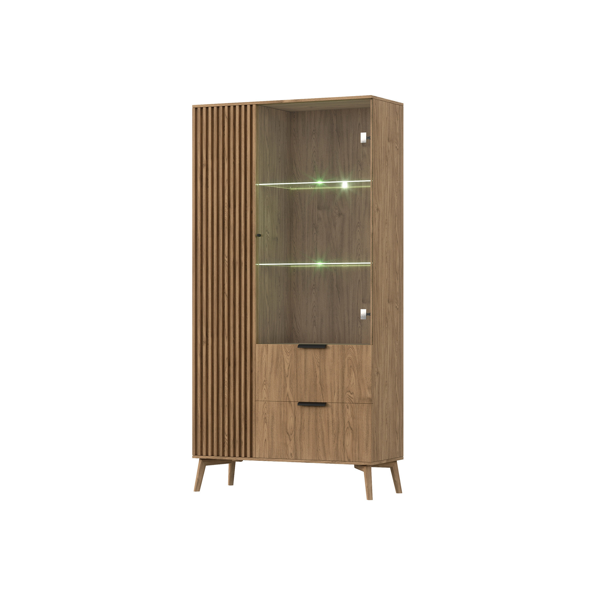 S šířkou 100 cm, výškou 192 cm a hloubkou 60 cm nabízí vitrína ENTSIAN 100 dostatek prostoru pro uložení a vystavení vašich oblíbených předmětů. Vnitřní uspořádání je navrženo tak, aby poskytovalo maximální využití prostoru, ať už potřebujete uložit knihy, dekorace nebo jiné cennosti. Skleněné dveře umožňují snadný přístup a zároveň chrání vaše věci před prachem a nečistotami.