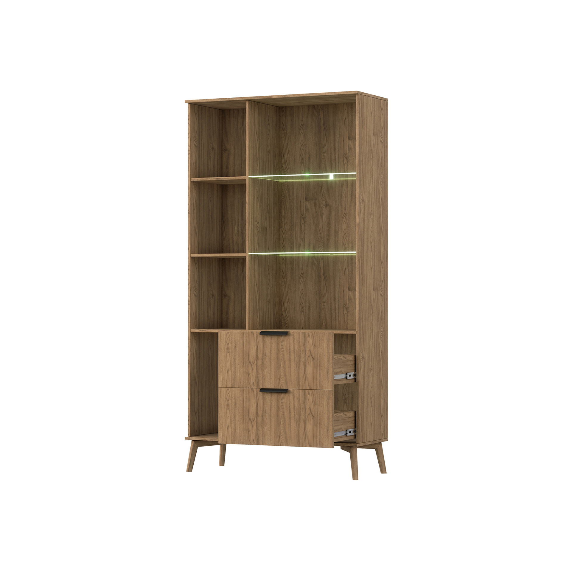 Vitrína ENTSIAN 100 je vyrobena z kvalitního lamina, které zajišťuje dlouhou životnost a odolnost vůči běžnému opotřebení. Povrchová úprava v dekoru Dub Artisan dodává vitríně přirozený a teplý vzhled, který se snadno kombinuje s ostatním nábytkem a interiérovými doplňky. Tento materiál je nejen esteticky příjemný, ale také snadno udržovatelný, což oceníte při každodenním používání.