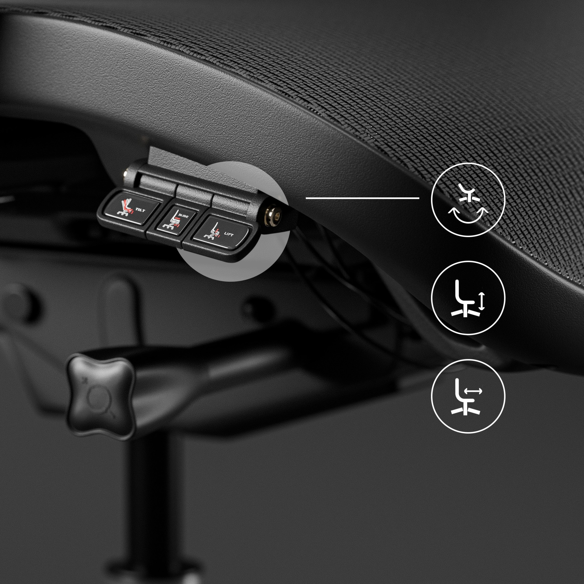 - Tlačítka pro pohodlné nastavení: Intuitivní ovládací prvky umožňují snadné a rychlé nastavení výšky sedáku, sklonu opěradla a dalších funkcí.