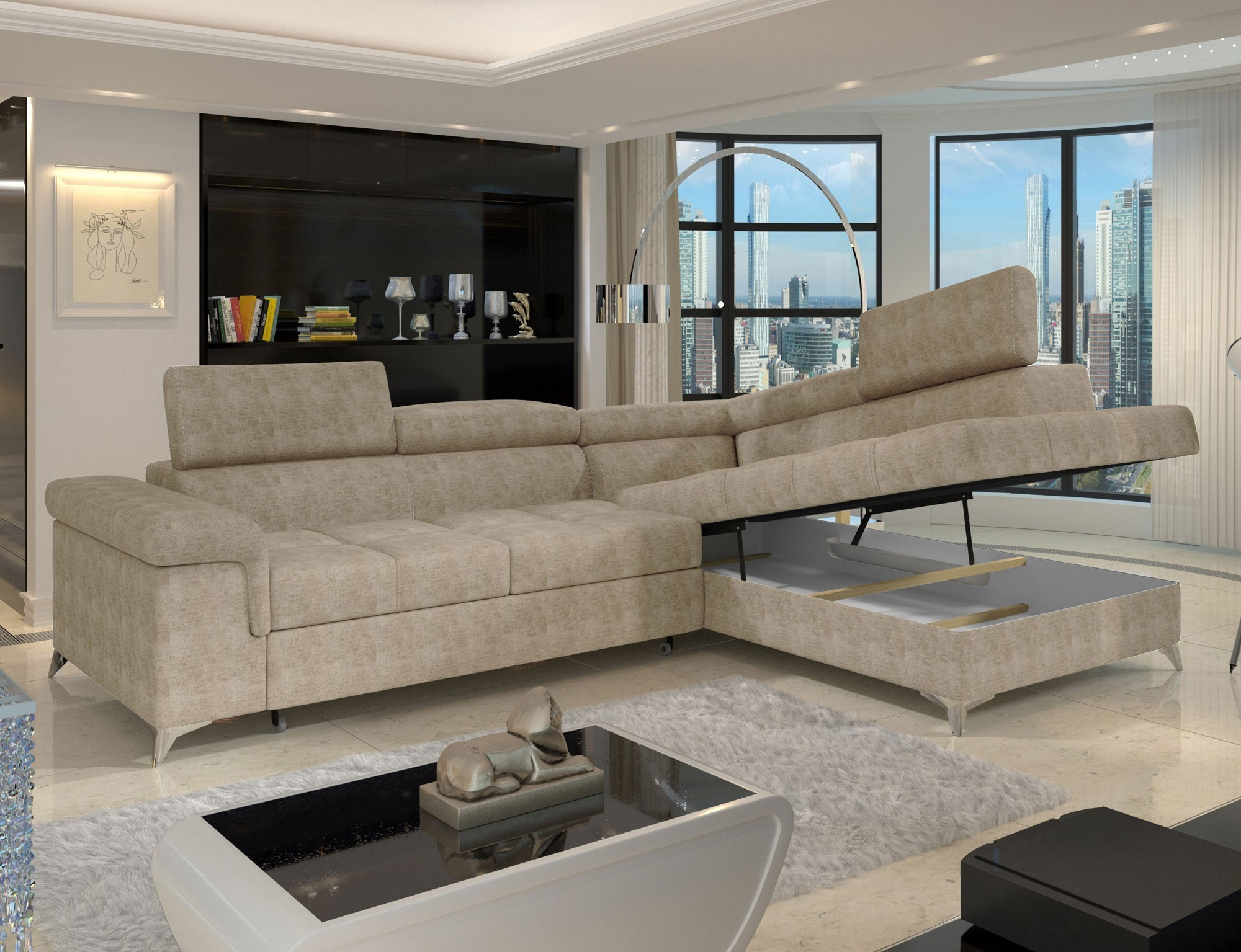 Rohová sedací souprava ERIDANO je ideální volbou pro ty, kteří hledají spojení stylu, funkčnosti a pohodlí. Její moderní design a praktické funkce ji činí skvělým doplňkem do každého obývacího pokoje. Nechte se okouzlit jejím vzhledem a užijte si chvíle relaxace s rodinou a přáteli.