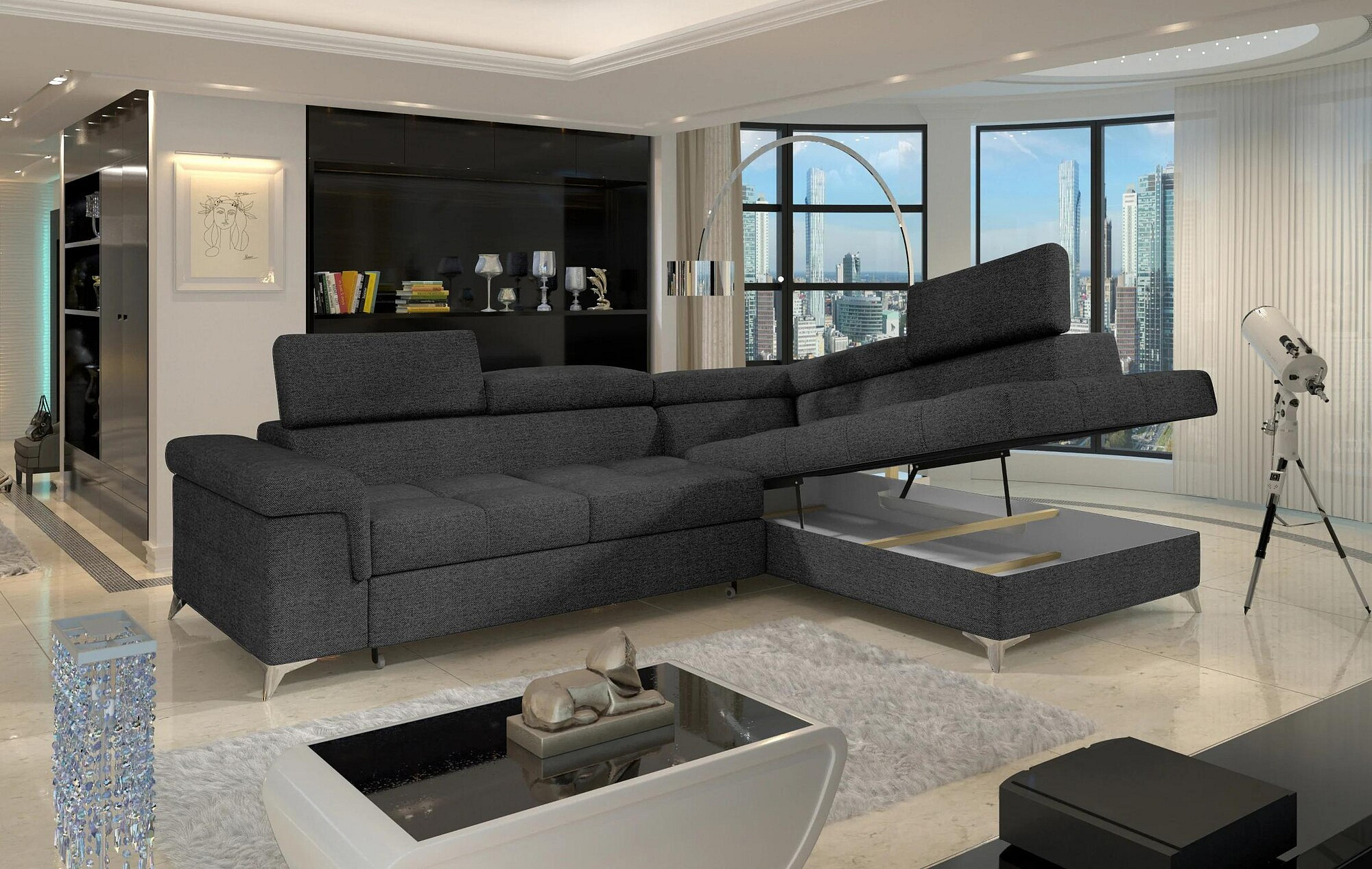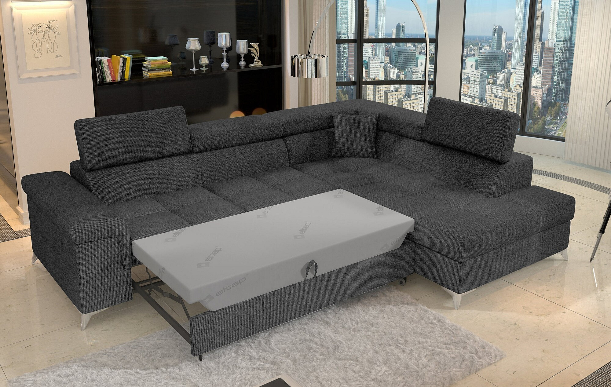 Rohová sedací souprava ERIDANO je ideální volbou pro ty, kteří hledají spojení stylu, funkčnosti a pohodlí. Její moderní design a praktické funkce ji činí skvělým doplňkem do každého obývacího pokoje. Nechte se okouzlit jejím vzhledem a užijte si chvíle relaxace s rodinou a přáteli.
