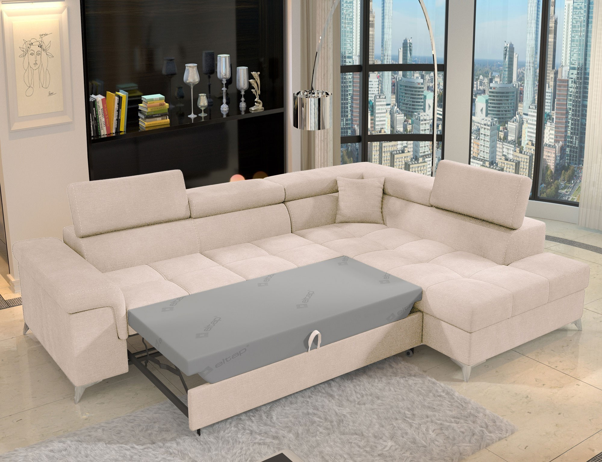 Rohová sedací souprava ERIDANO je ideální volbou pro ty, kteří hledají spojení stylu, funkčnosti a pohodlí. Její moderní design a praktické funkce ji činí skvělým doplňkem do každého obývacího pokoje. Nechte se okouzlit jejím vzhledem a užijte si chvíle relaxace s rodinou a přáteli.
