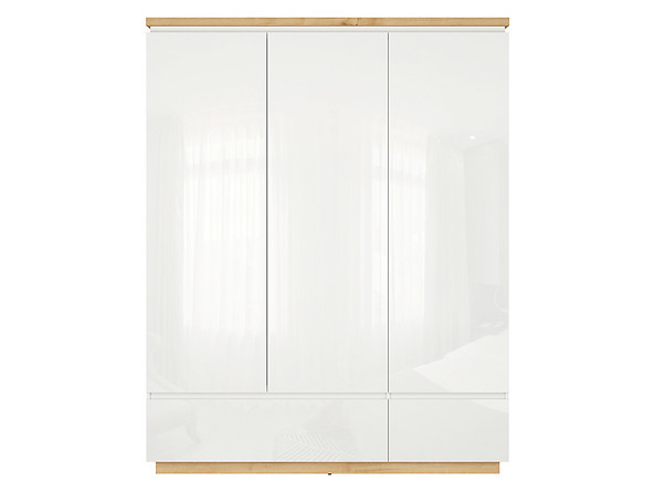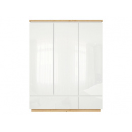 Šatní skříň ERLA SZF3D2S, bílá/dub minerva/bílý lesk