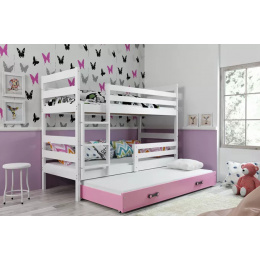 Dětská patrová postel ERYK 3 s přistýlkou 90x200 cm, včetně matrací, Bílá/Růžová