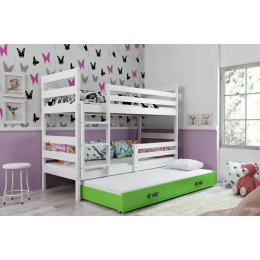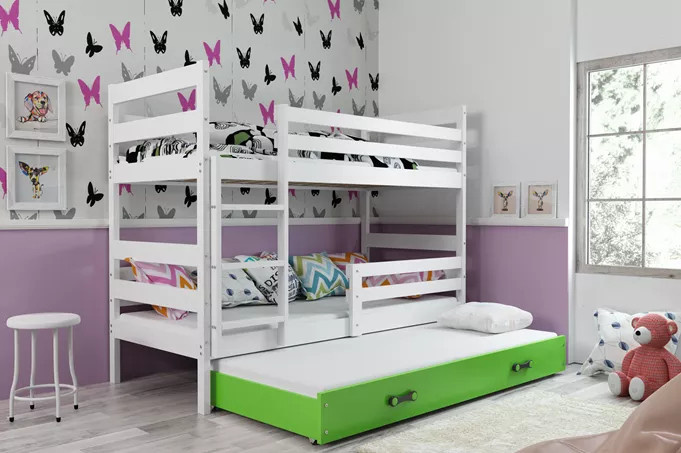 Dětská patrová postel ERYK 3 s přistýlkou 90x200 cm, včetně matrací, Bílá/Zelená