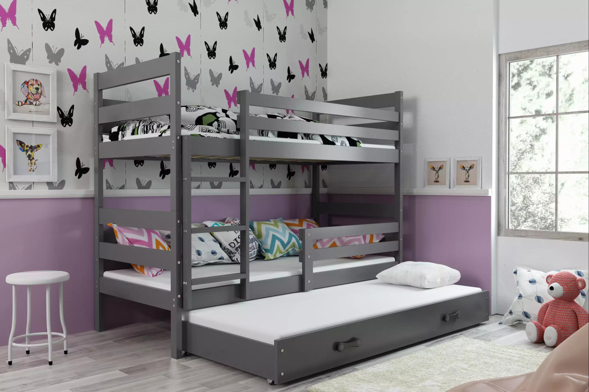 Dětská patrová postel ERYK 3 s přistýlkou 90x200 cm, bez matrace, Grafit/Grafit
