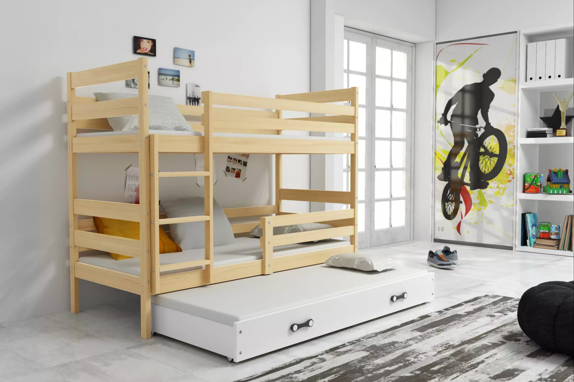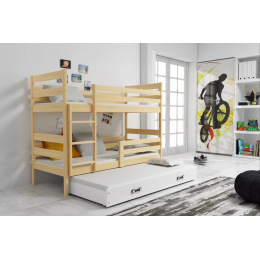 Dětská patrová postel ERYK 3 s přistýlkou 90x200 cm, bez matrace, Přírodní/Bílá