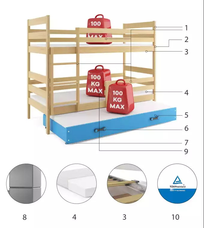 - Maximální zatížení postele je 100 kg
