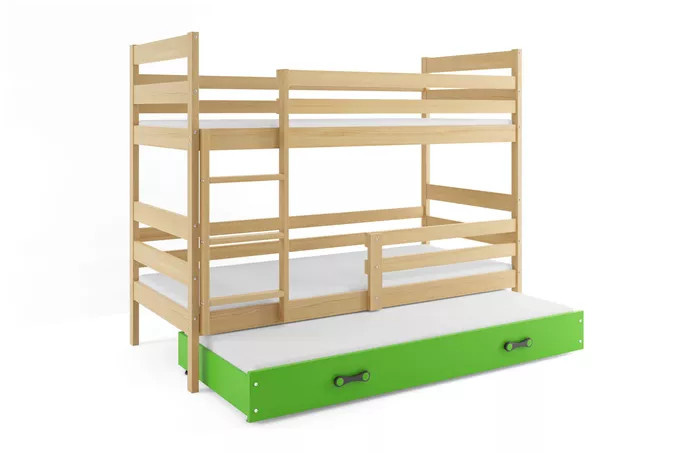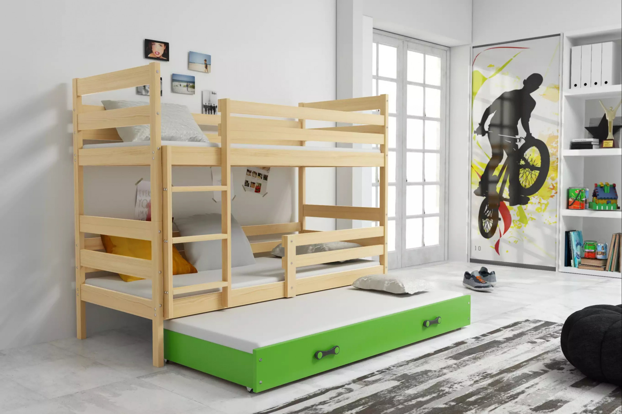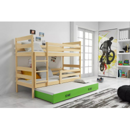 Dětská patrová postel ERYK 3 s přistýlkou 90x200 cm, bez matrace, Přírodní/Zelená