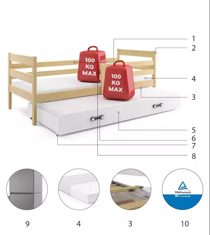 - Maximální zatížení postele je 100 kg