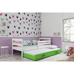 Dětská postel ERYK s přistýlkou 90x200 cm, včetně matrací, Bílá/Zelená