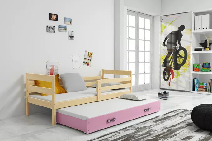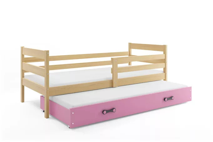 Dětská postel ERYK s přistýlkou 80x190 cm, včetně matrací, Přírodní/Růžová