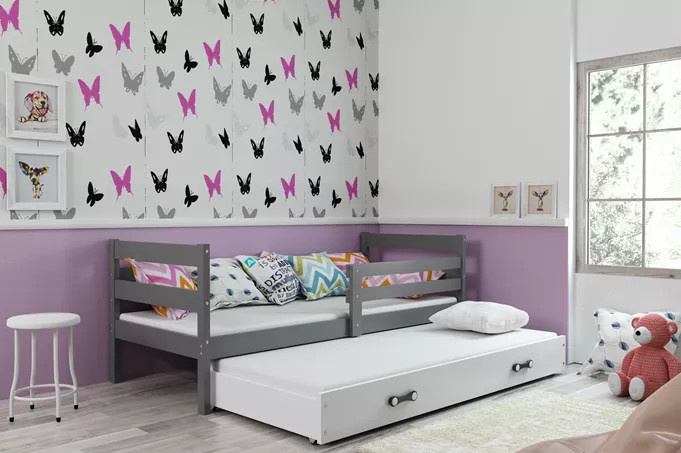 Dětská postel ERYK s přistýlkou 80x190 cm, včetně matrací, Grafit/Bílá
