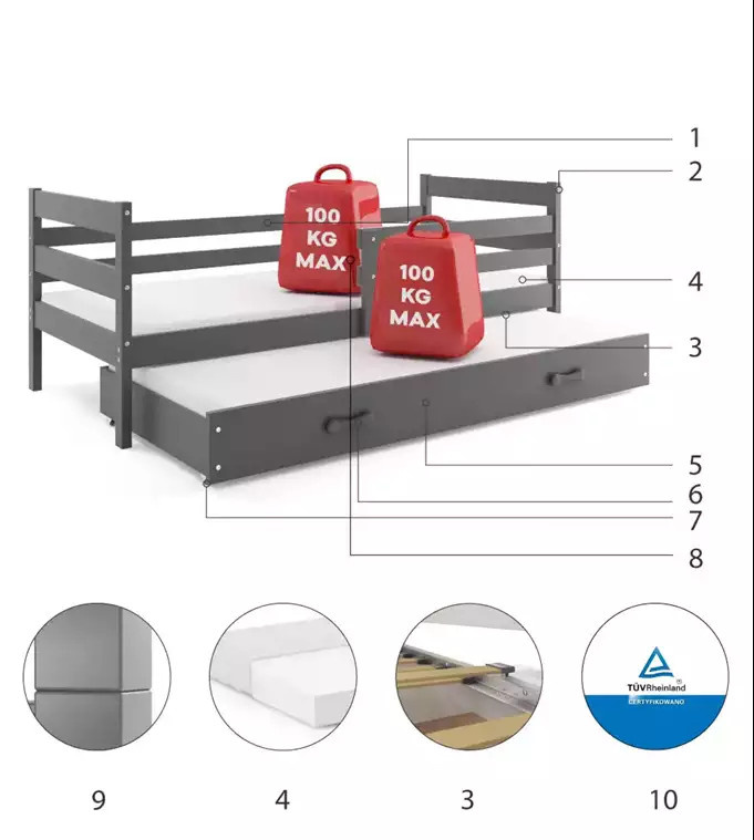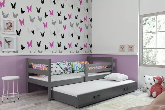 Dětská postel ERYK s přistýlkou 90x200 cm, včetně matrací, Grafit/Grafit