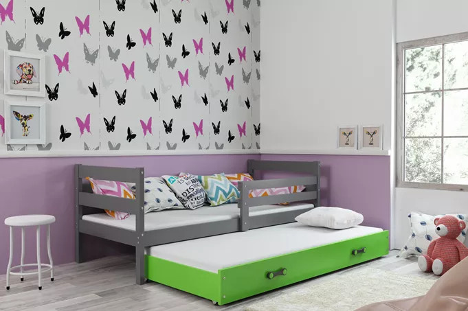 Dětská postel ERYK s přistýlkou 80x190 cm, včetně matrací, Grafit/Zelená