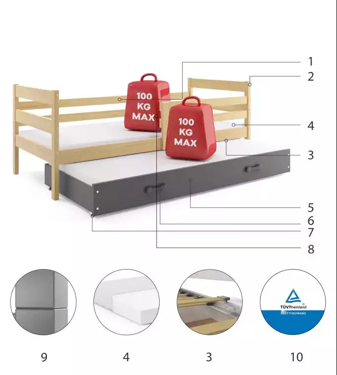 - Maximální zatížení postele je 100 kg