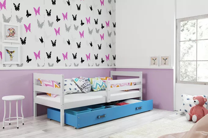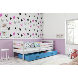 Dětská postel ERYK 80x190 cm se šuplíkem, s matrací, Bílá/Modrá
