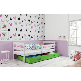 Dětská postel ERYK 80x190 cm se šuplíkem, s matrací, Bílá/Zelená