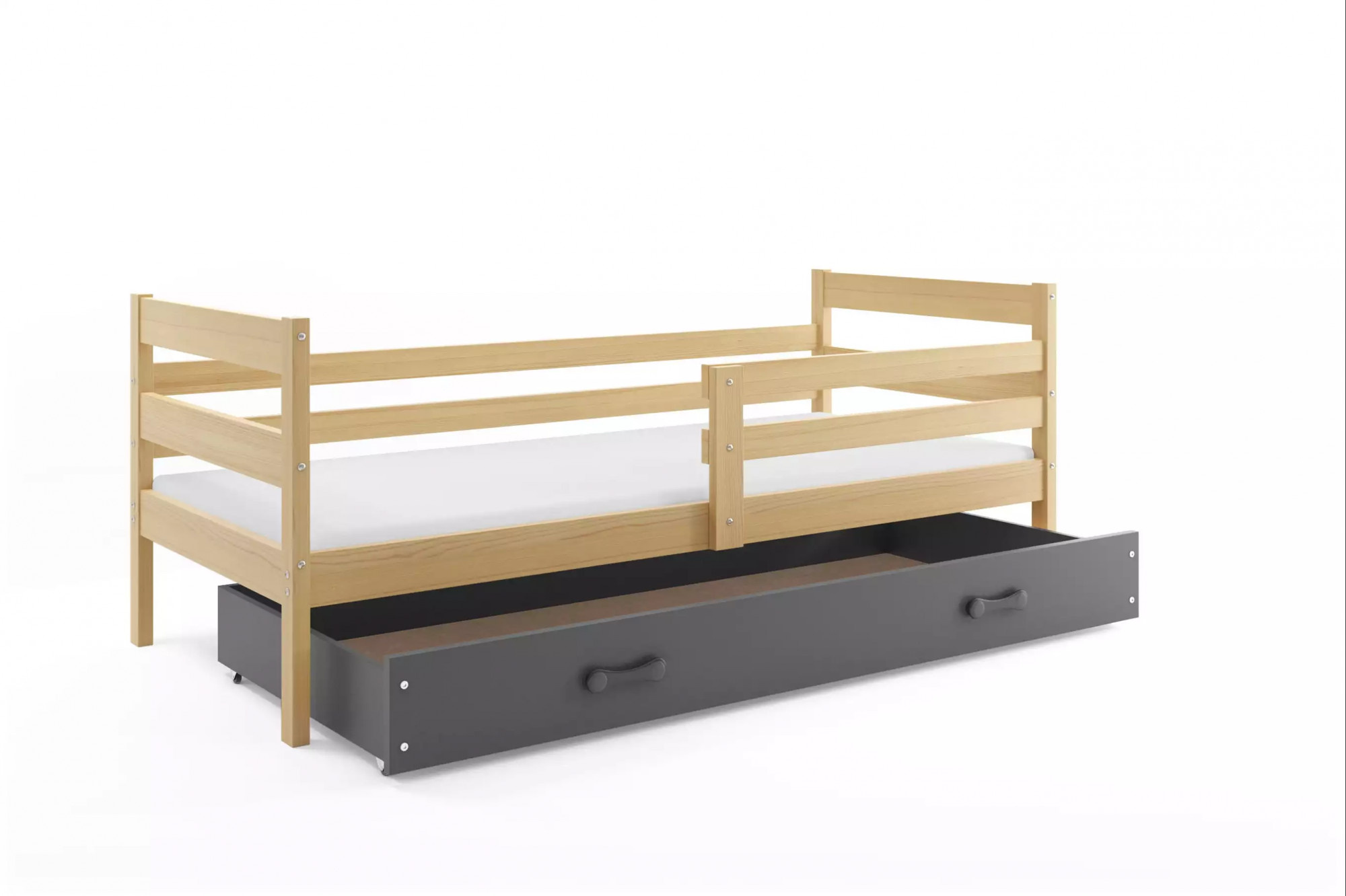 Dětská postel ERYK 80x190 cm se šuplíkem, bez matrace, Přírodní/Grafit