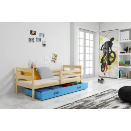 Dětská postel ERYK 80x190 cm se šuplíkem, s matrací, Přírodní/Modrá