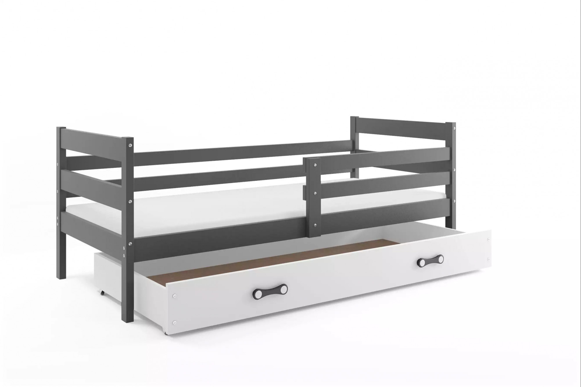 Dětská postel ERYK 90x200 cm se šuplíkem, s matrací, Grafit/Bílá