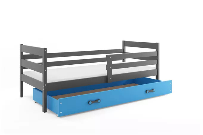 Dětská postel ERYK 80x190 cm se šuplíkem, s matrací, Grafit/Modrá