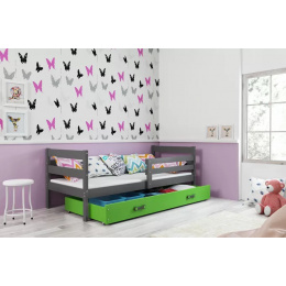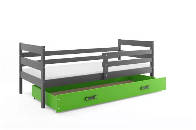 Dětská postel ERYK 80x190 cm se šuplíkem, bez matrace, Grafit/Zelená