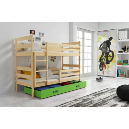 Dětská patrová postel ERYK se šuplíkem 90x200 cm, včetně matrací, Přírodní/Zelená