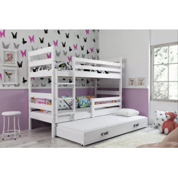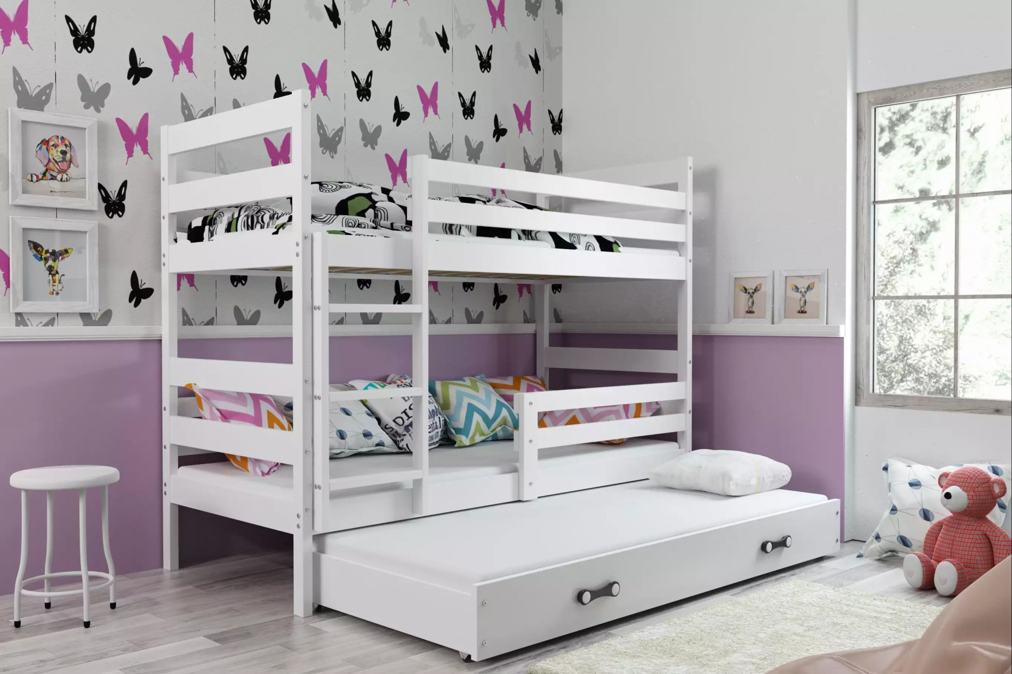 Dětská patrová postel ERYK 3 s přistýlkou 90x200 cm, bez matrace, Bílá/Bílá