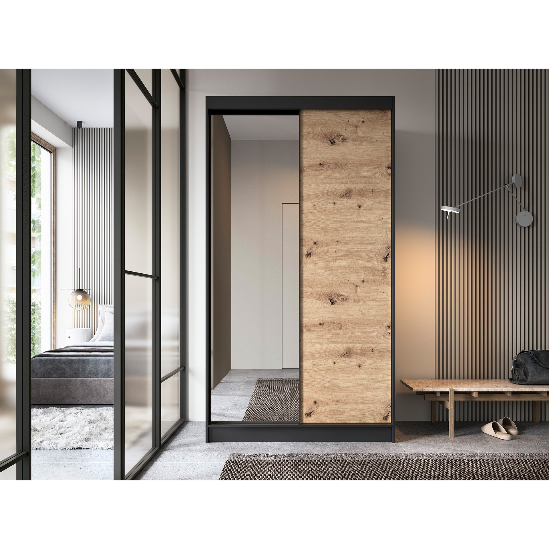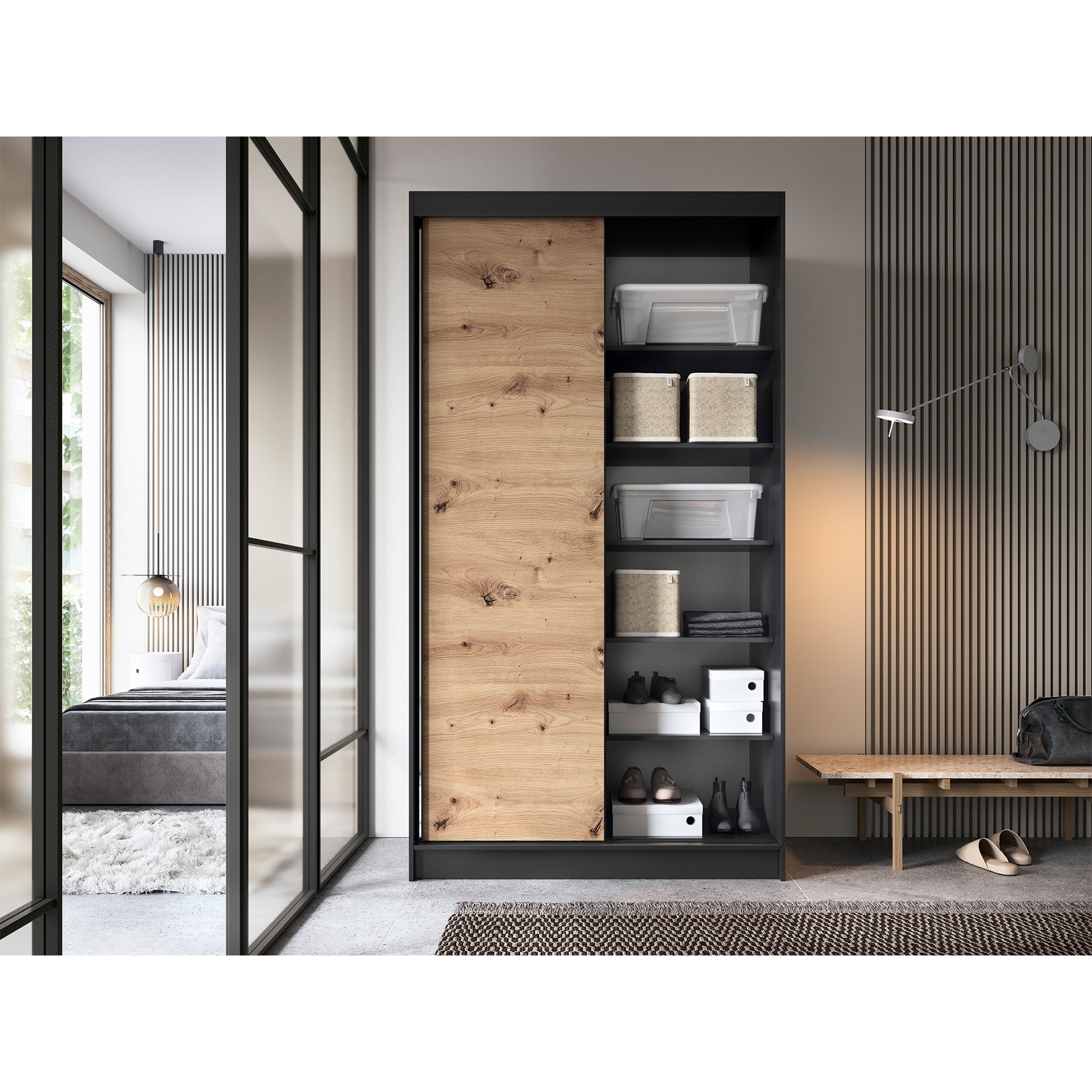 Posuvná skříň ESVILLE II, Dub Artisan/Černá Mat