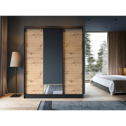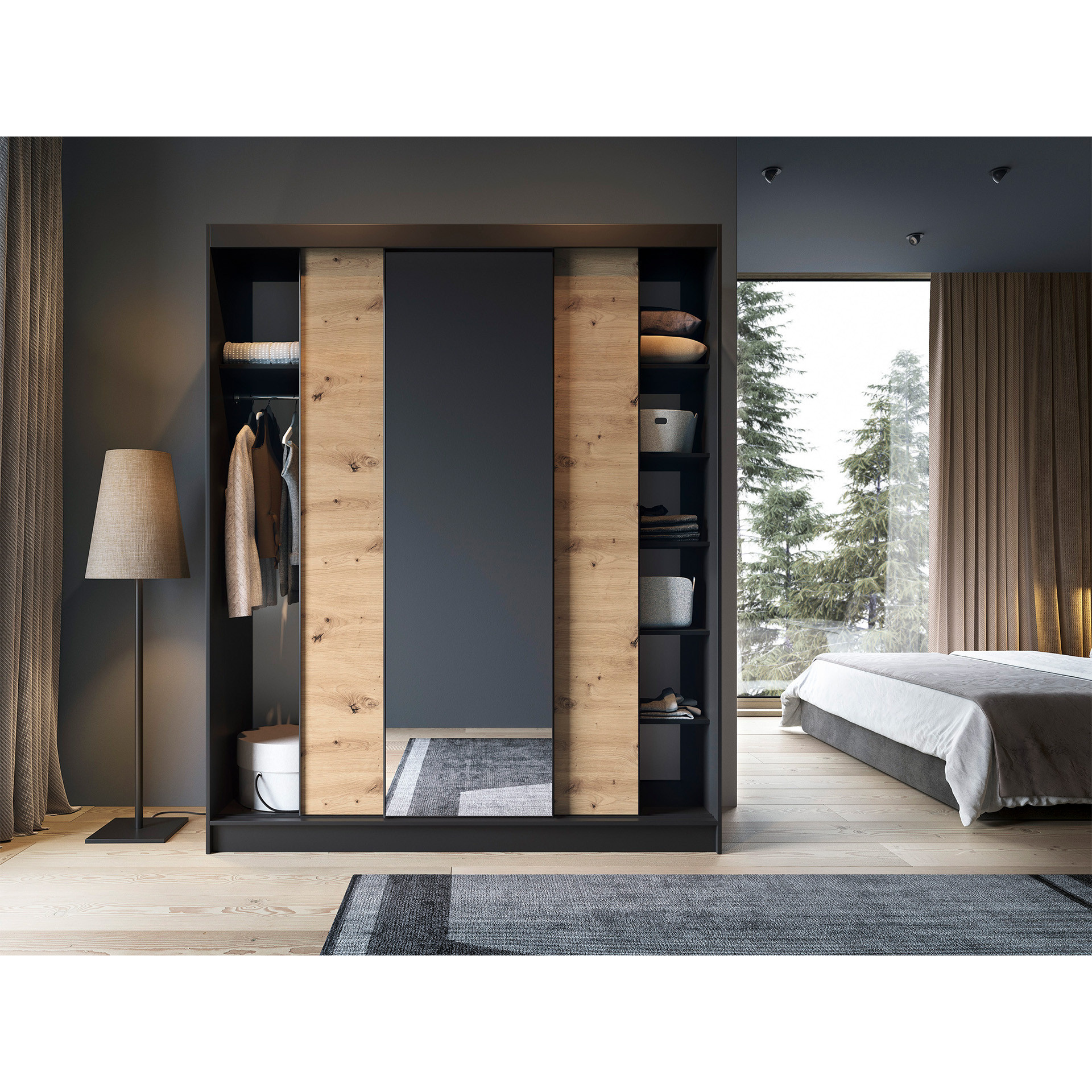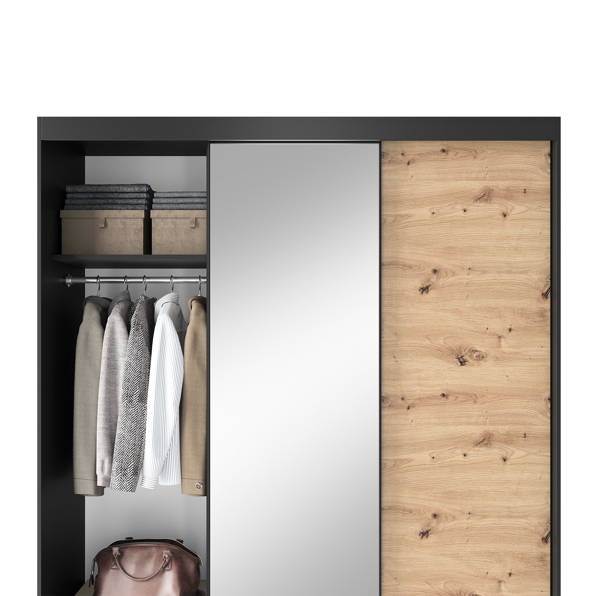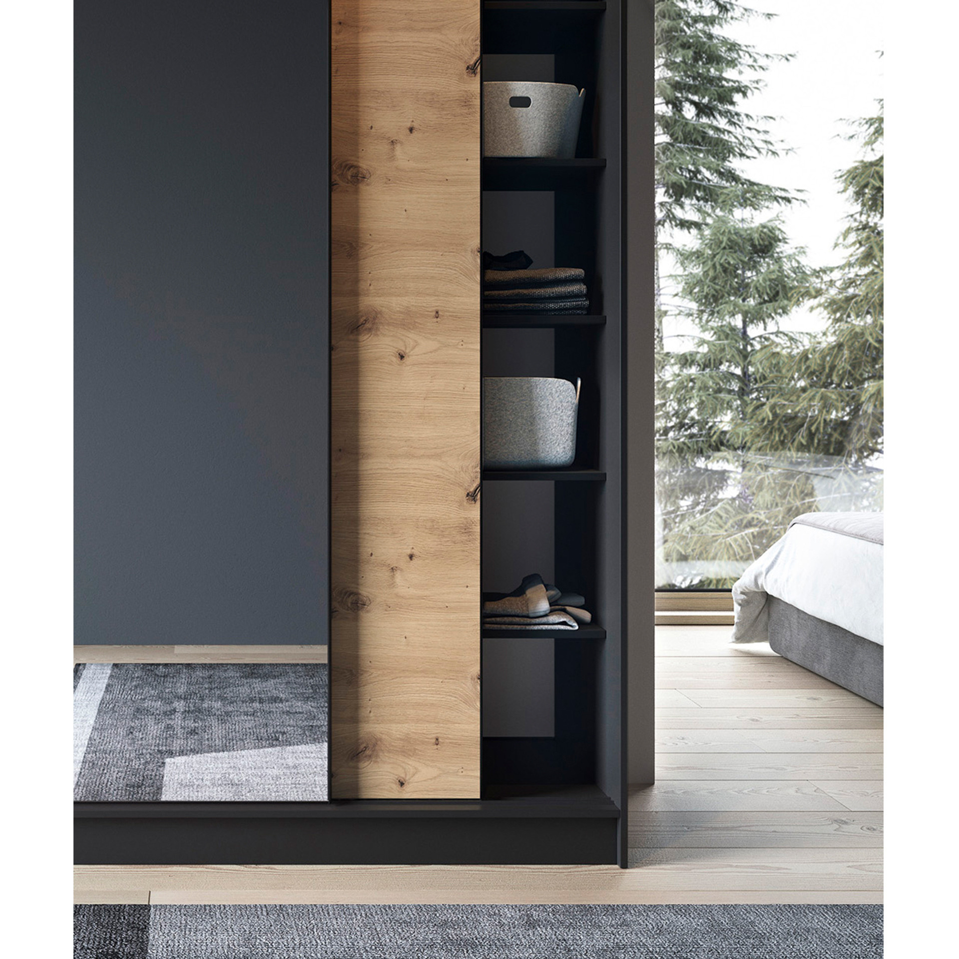 Posuvná skříň ESVILLE III, Dub Artisan/Černá Mat