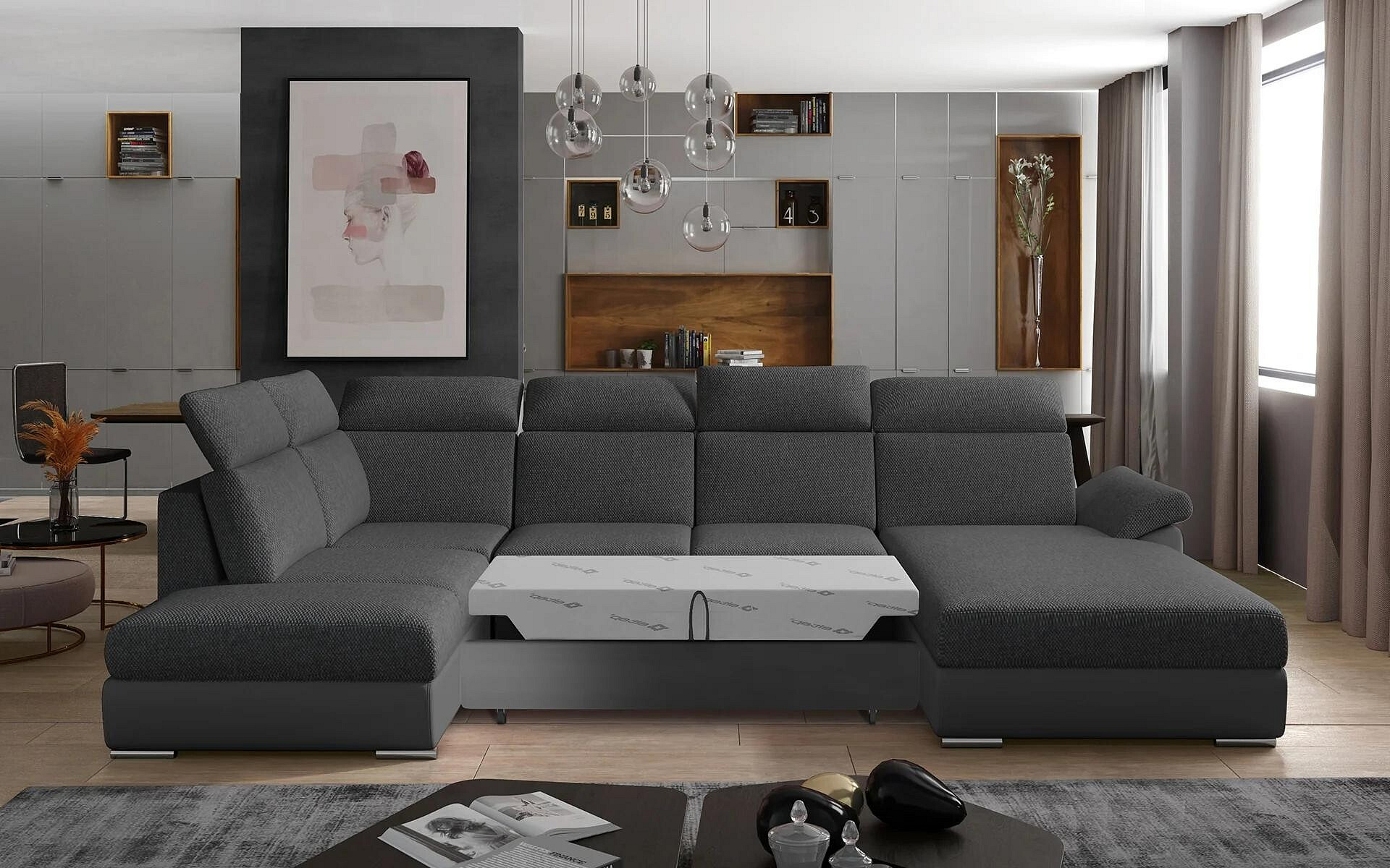 Objevte dokonalou kombinaci elegance, pohodlí a praktičnosti s naší sedací soupravou ve tvaru U EVANELL v elegantním provedení. Tato sedací souprava je navržena tak, aby se stala středobodem vašeho obývacího pokoje a poskytla vám maximální komfort a funkčnost.